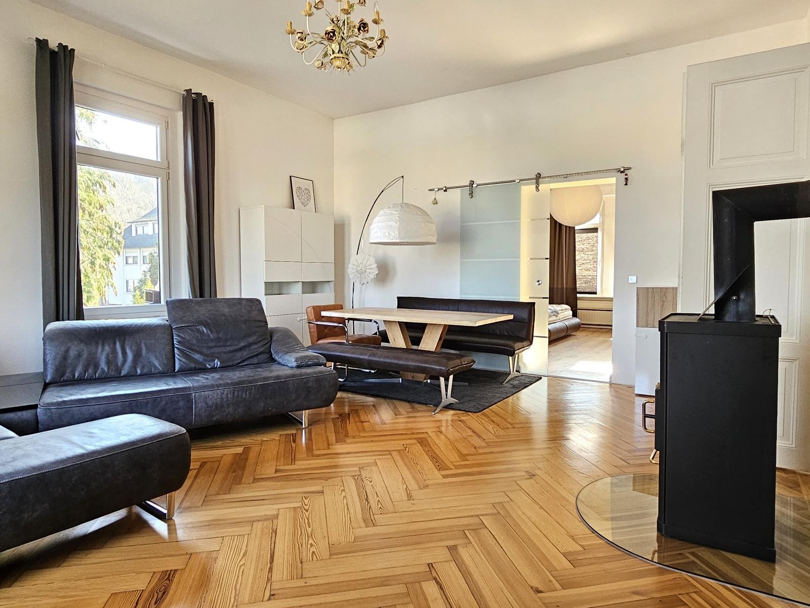 Sie haben die seltene Gelegenheit eine ca. 120 m² große Eigentumswohnung in einer repräsentativen Stadt-Villa zu erwerben. Hohe Räume, Parkett mit historischem Fischgrätmuster, elegantes Klick-Vinyl, ergänzt durch geschmackvolle Fliesen vermitteln Wohnkultur und Flair.